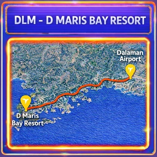 The distance from Dalaman Airport to D Maris Bay Resort Hotel is around 120 kilometres. The journey normally takes about 1 hour and 45 minutes depending on traffic conditions.